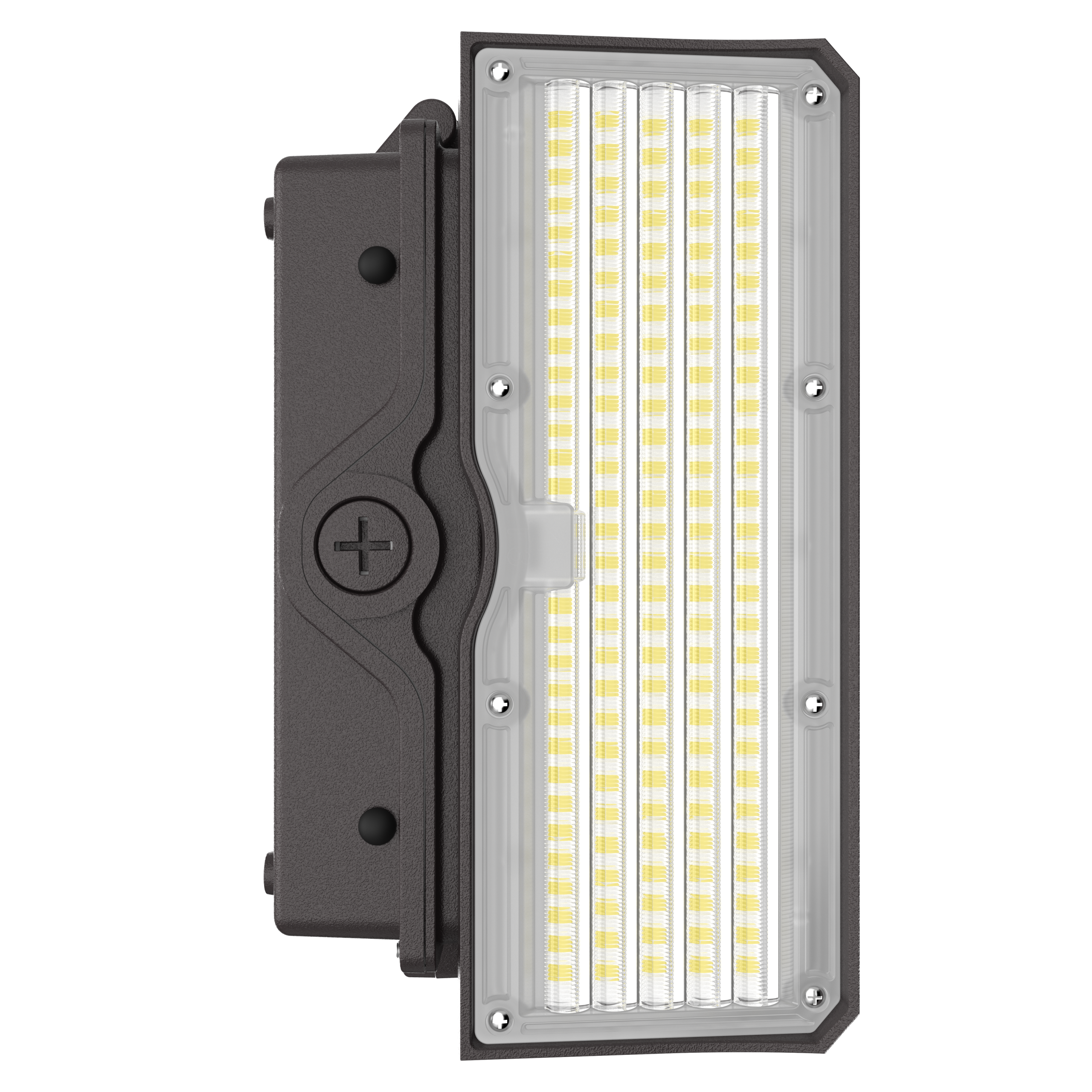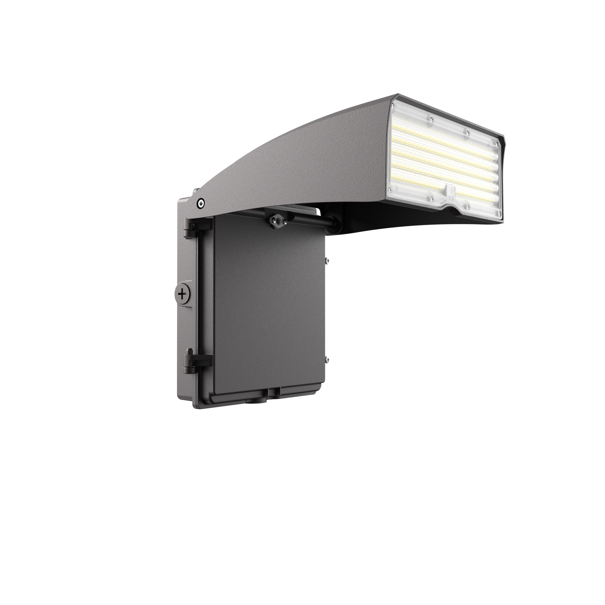 The WPLS2 series offers 4 switch-selectable lumen/wattage outputs and 3 switch-selectable CCT color outputs between 2 standard wall pack sizes. The die-cast door frame is fully gasketed with a one-piece solid silicone gasket to keep out moisture and dust, providing an IP65 rating for the luminaire. Well-crafted reflector optics allow the light engine to be recessed within the luminaire, providing visual comfort, superior distribution, uniformity, and spacing in wall-mount applications. 0 to +90° tilt adjustments. The classic architectural shape of the WPLS1 series was designed for applications such as hospitals, schools, malls, restaurants, and commercial buildings.